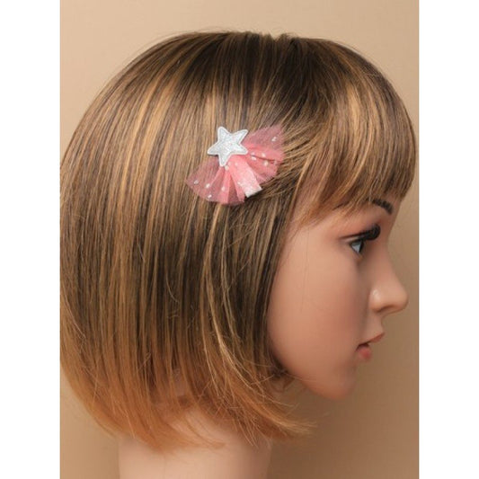 Hårklemme med Glitter-Stjerne i Sølv - og Lyserødt Net