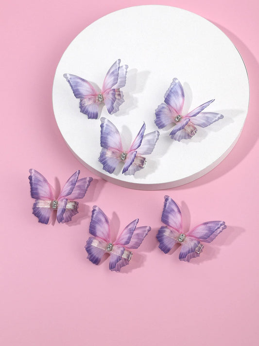 6 Fine Sommerfugle Hårklemmer - i Lilla