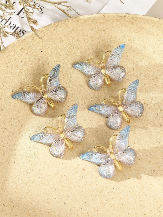 Sæt med 5 Sommerfugle Hårklemmer - i Lyseblå & Guld