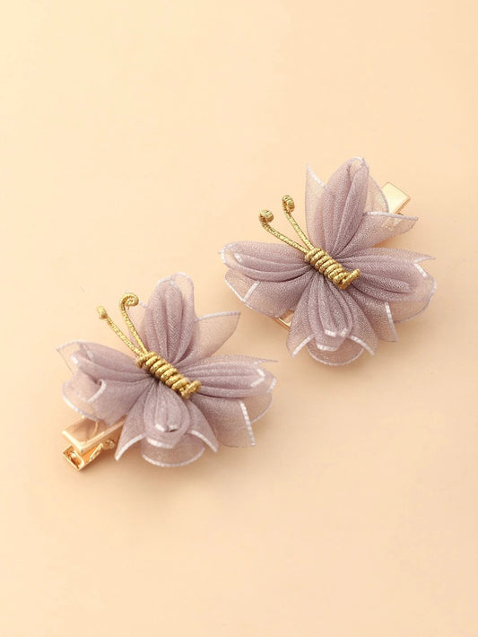 2 Hårklemmer med Fine Sommerfugle - i Lilla
