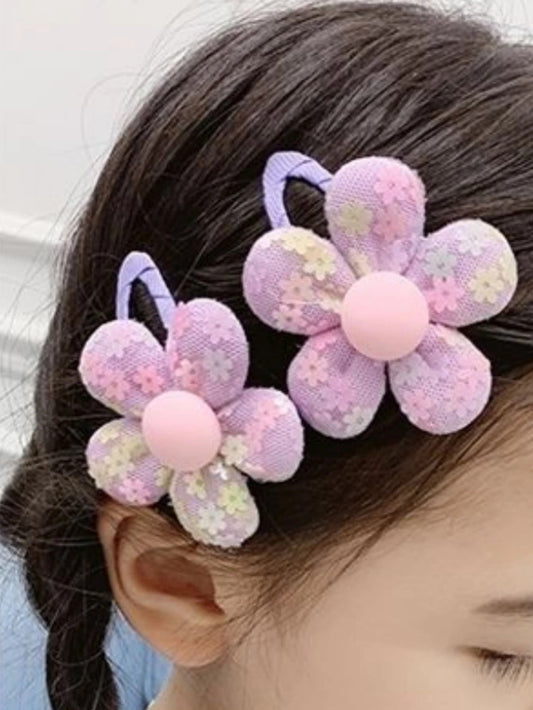 Store Hårspænder med Blomster & Pailletter - i Lilla