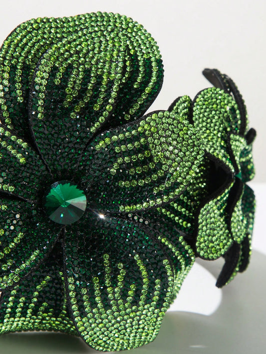 Sort Polstret HÄrbÞjle med Store GrÞnne Perleblomster