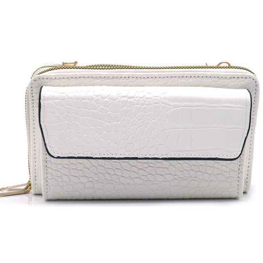 Hvid Skuldertaske med Pung - i KrokodillemĂžnster