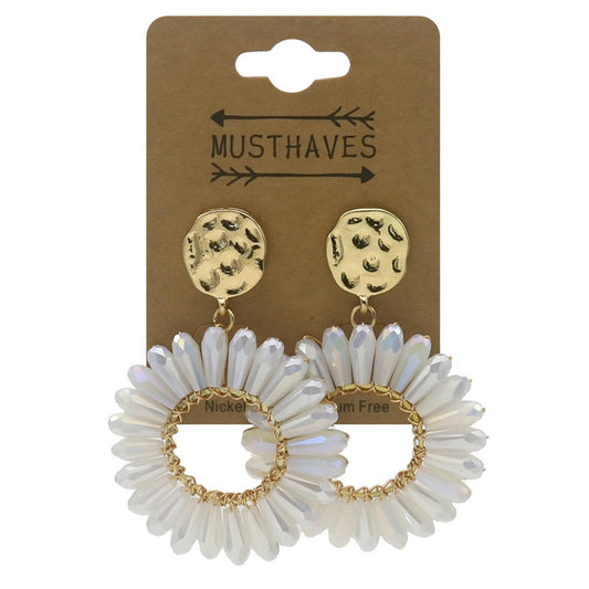 Gyldne Drop Ăreringe med Hvide Perle Blomster