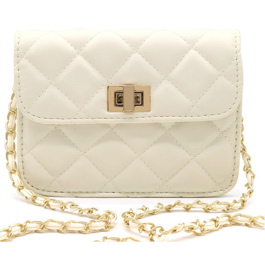 Hvid Skuldertaske i Polstret Design med Guldrem