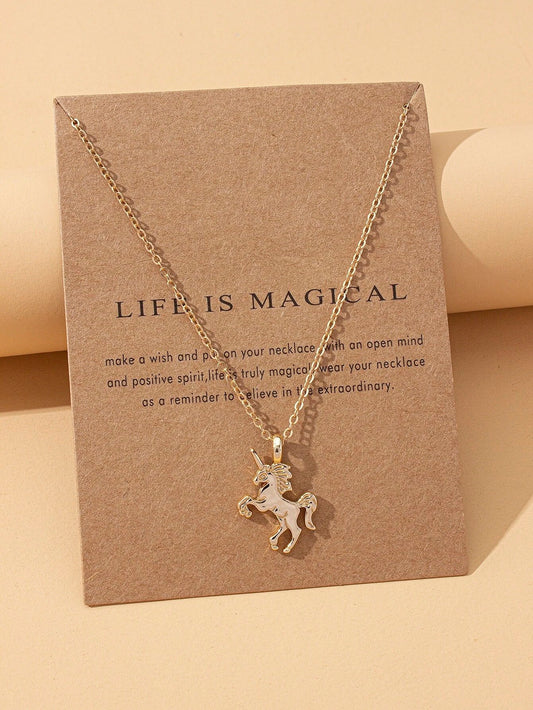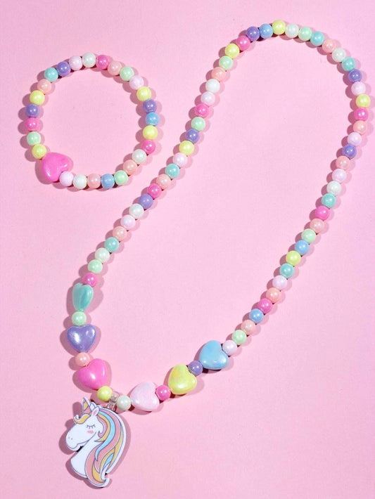 Halskæde & Armbånd - Perler med Hjerter & Enhjørning