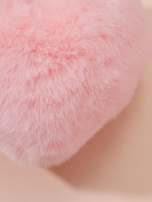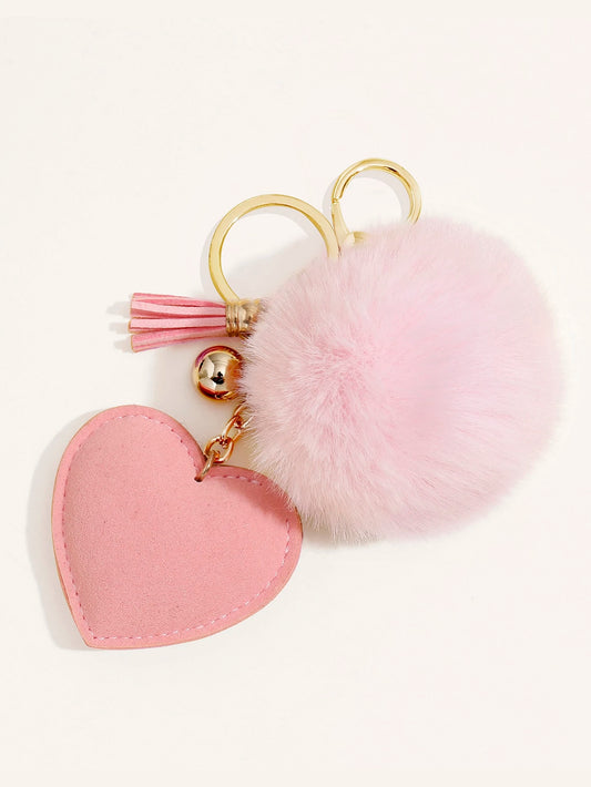 Nøglering med Glansfuld Hjerte, Klokke, Tassel & Pom Pom - i Lyserød