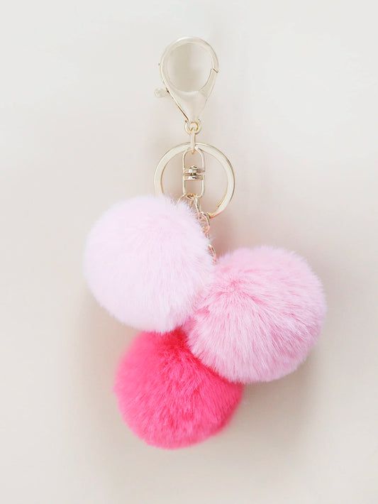 Gylden Nøglering med 3 Lyserøde Pom Pom