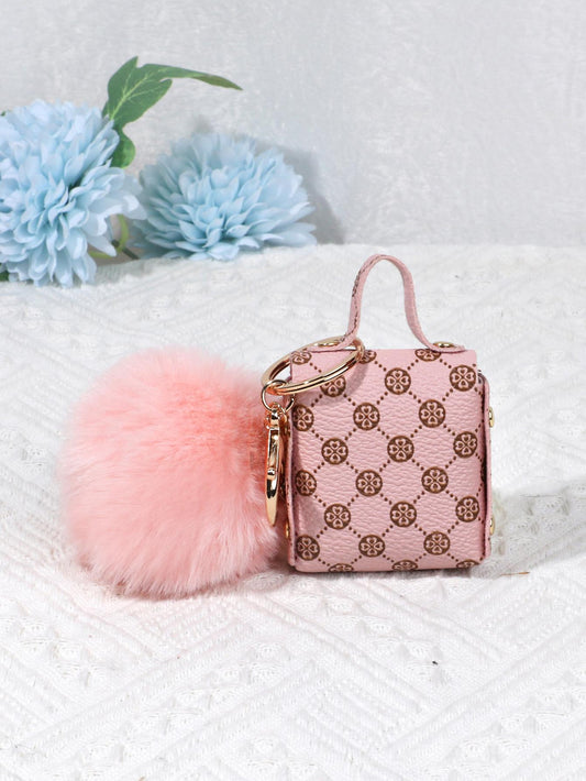 Nøglering med Pung & Blød Pom Pom - i Lyserød