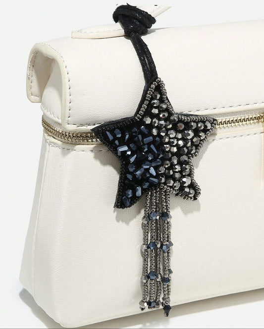 Taskepynt - Stjerne Charm med Perler - i Sølv & Sort