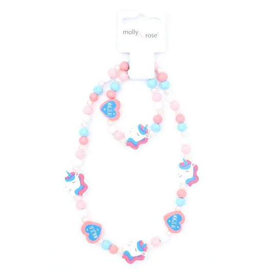 Halskæde & Armbånd - Træperler med Enhjørninger & Hjerter