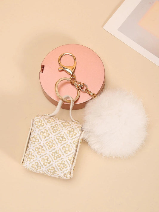 Gylden Nøglering med Pung & Blød Hvid PomPom