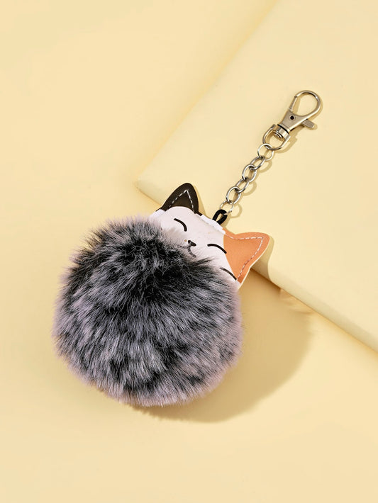 Nøglering med Grå Kat & Pom Pom
