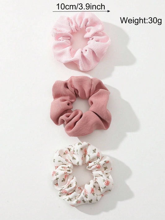 3 Stk Scrunchies - i Lyserød, Rosa & Blomsterprint
