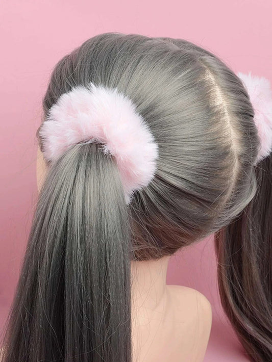 Sæt - 2 stk Scrunchies i Blødt Plys - i Lys Rosa