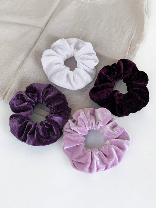 4 Stk Store Velour Hårelastikker - i Lilla Farver