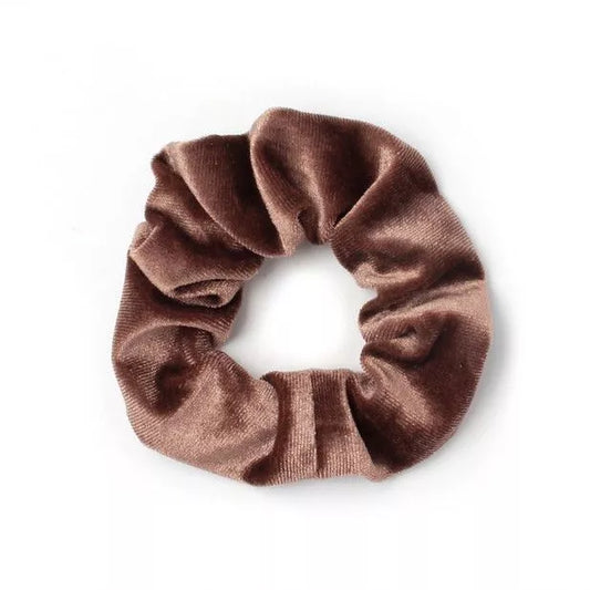 Stor Scrunchie Hårelastik i Blødt Velour - i Mørk Beige