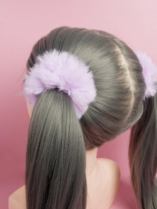 Sæt - 2 stk Scrunchies i Blødt Plys - i Lys Lilla