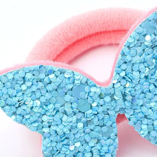 Jersey Hårelastikker med Glitter-Sommerfugle - i Lyserød-Turkis
