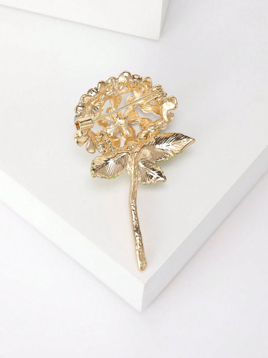 Gylden Broche med Blomster Buket - i Hvid & LyserĂžd