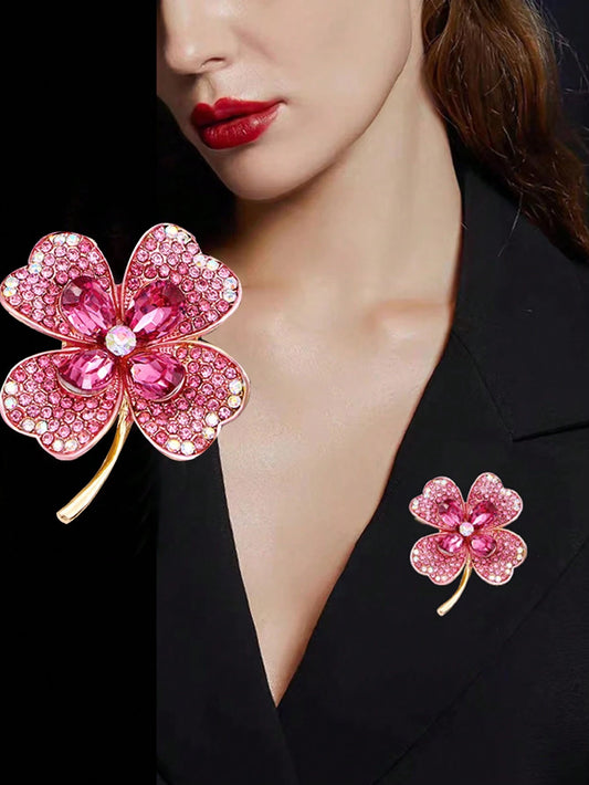 Gylden Broche med FirklĂžver og LyserĂžde Perler