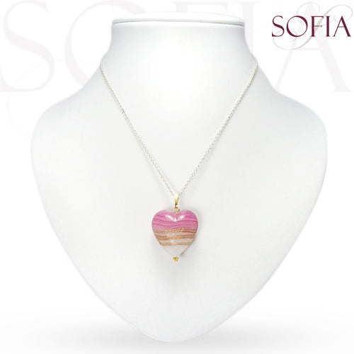 Stort Hjerte-Smykke i Stribet Glas - LyserĂžd med Guld - Sofia Design
