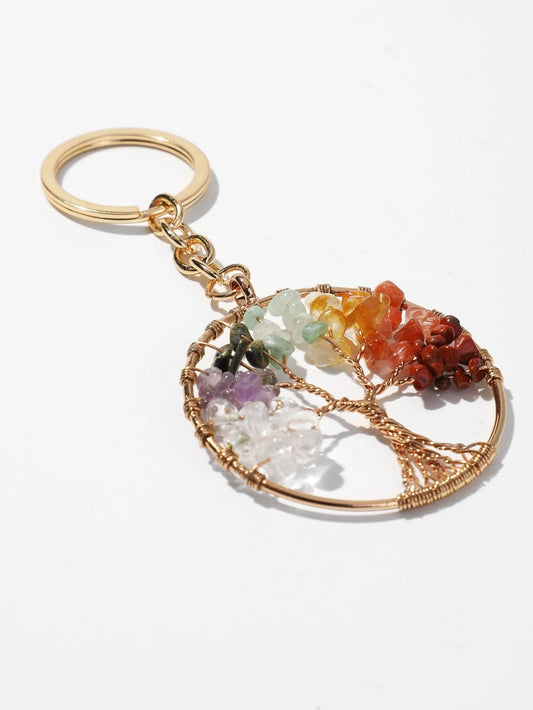 Nøglering med Livets Træ & Natursten i Flotte Farver