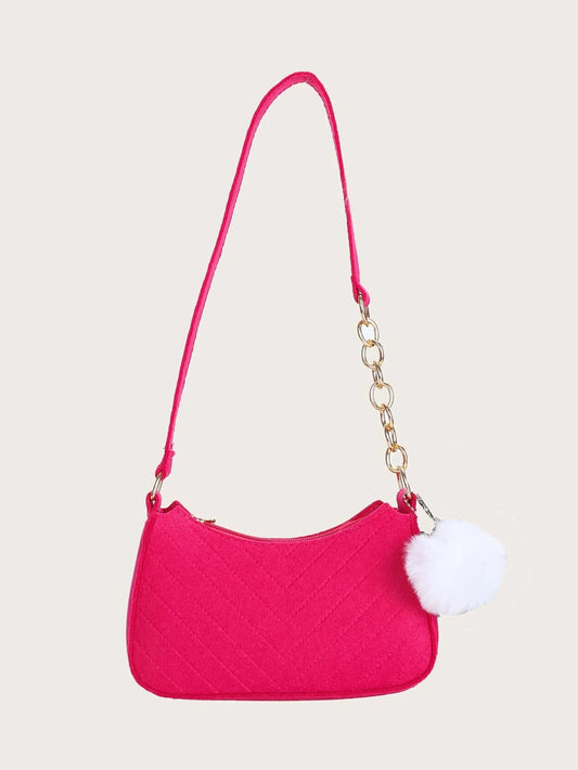 Pink Skuldertaske med Kæde & Pom Pom