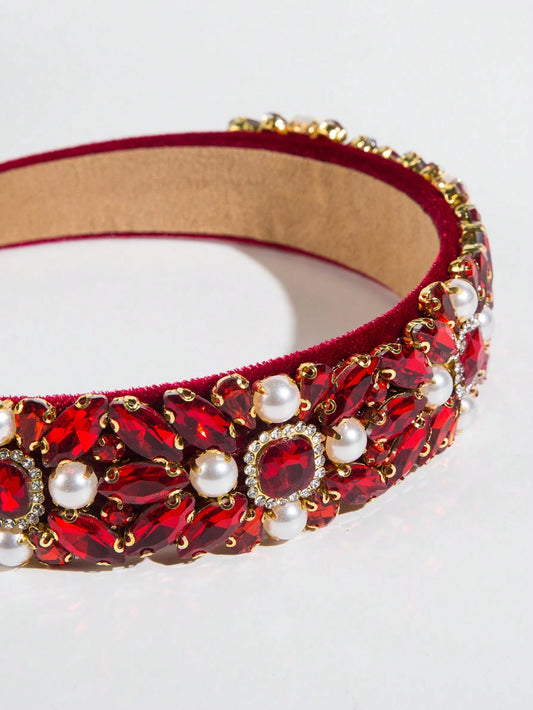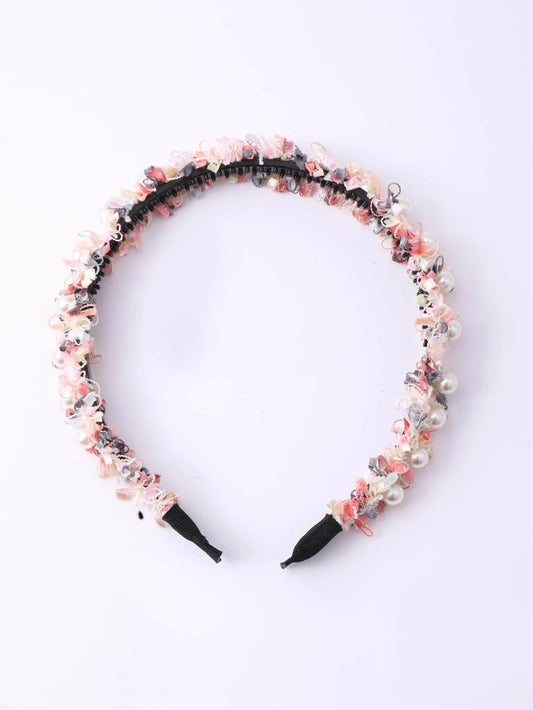 Velour Hårbøjle med Sølvgrå Perler & Indre Kam