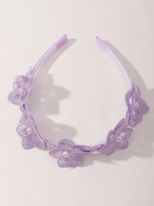 Hårbøjle med Satin Blomster med Krystalperler - i Lilla