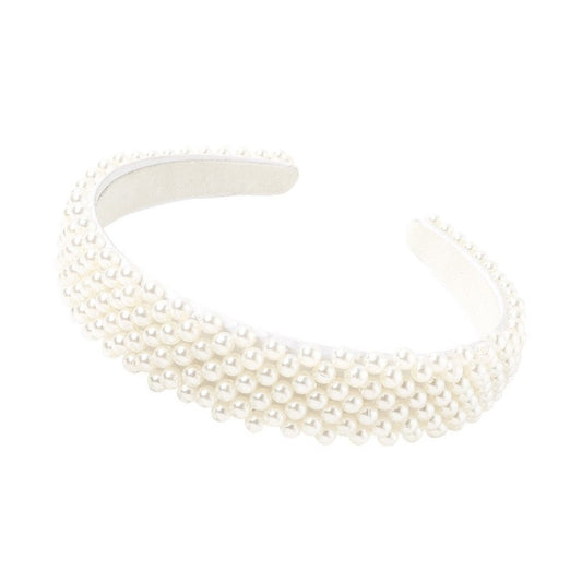 Smuk Polstret Hårbøjle med Perlebroderi - i Sølv
