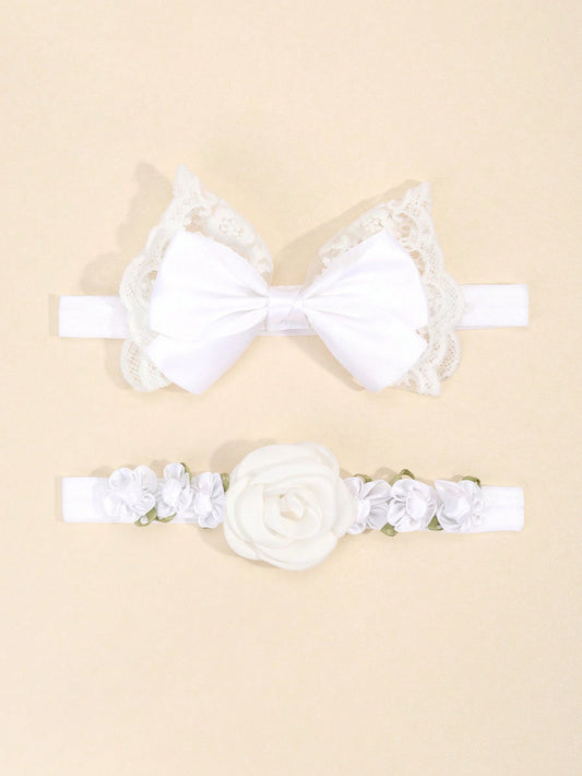 2 Baby Hårbånd med Sløjfe & Blomster - i Hvid
