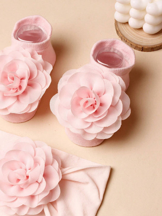 Baby Hårbånd og Sokker med Blomster - i Lyserød