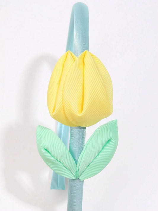 2 Hårbøjler - med Tulipaner i Lyserød & Gul