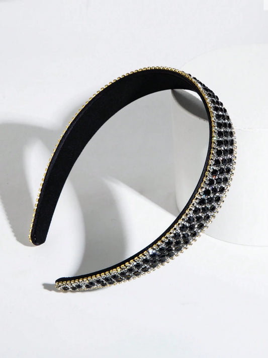 Hårbøjle med Glansfulde Perler i Sort & Sølv