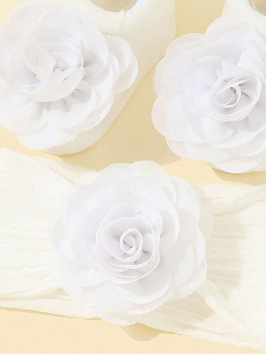 Baby Hårbånd og Sokker med Blomster - i Hvid