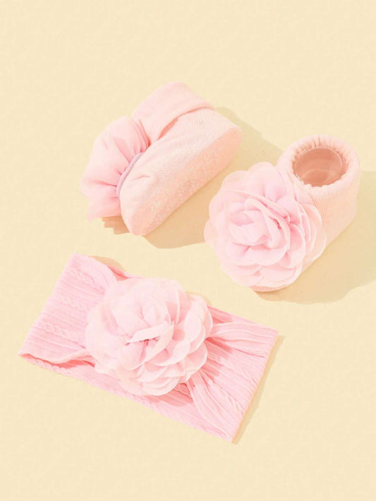 Baby Hårbånd og Sokker med Blomster - i Lyserød
