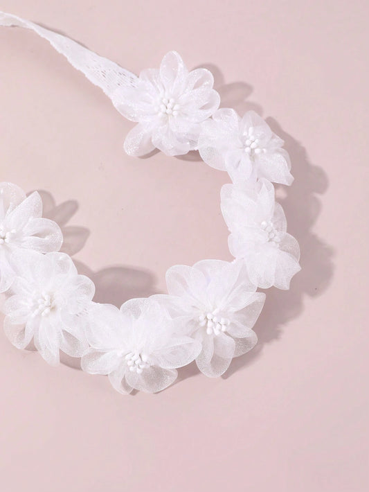 Hvidt Blonde Hårbånd med Satin-Blomster