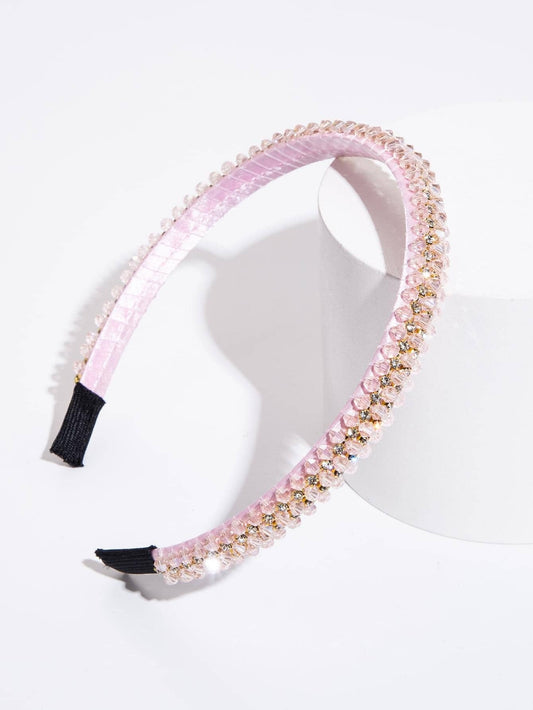 Hårbøjle med Glansfulde Perler - i Lyserød & Gylden