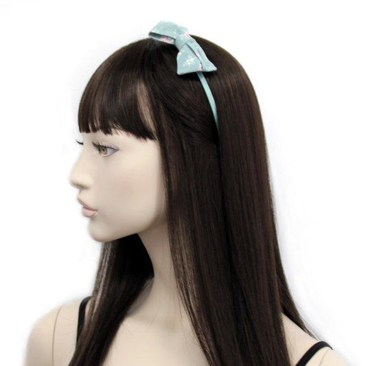 Satin-Hårbøjle med Blomstret Sløjfe - i Lyseblå