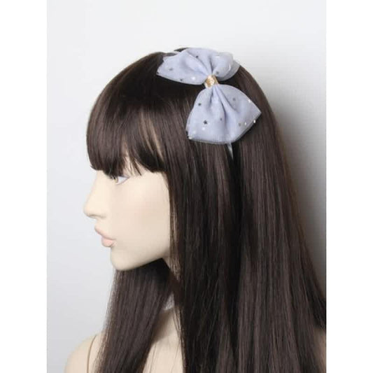 Grå Hårbøjle med Sløjfe, Glitterbånd & Guld-Stjerner