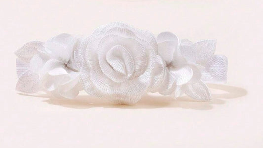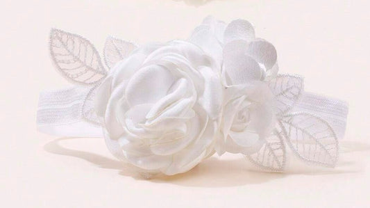 Hvid Baby Hårbånd med Roser & Blade