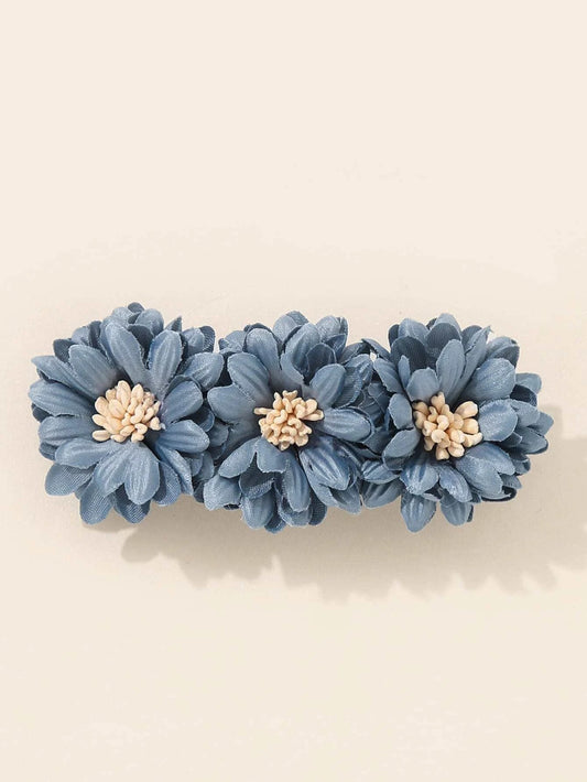 Patent Hårspænde med Blomster - i Blå