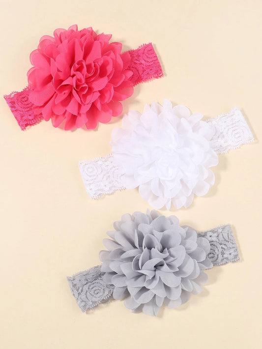 3 stk Baby Hårbånd - Fin Blomst på Elastik Blonde-Hårbånd