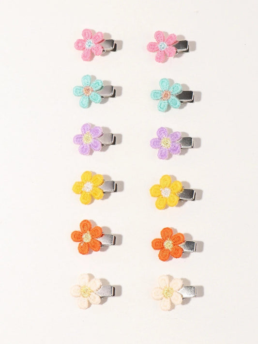 12 Stk Små Hårklemmer med Blomster i Friske Farver