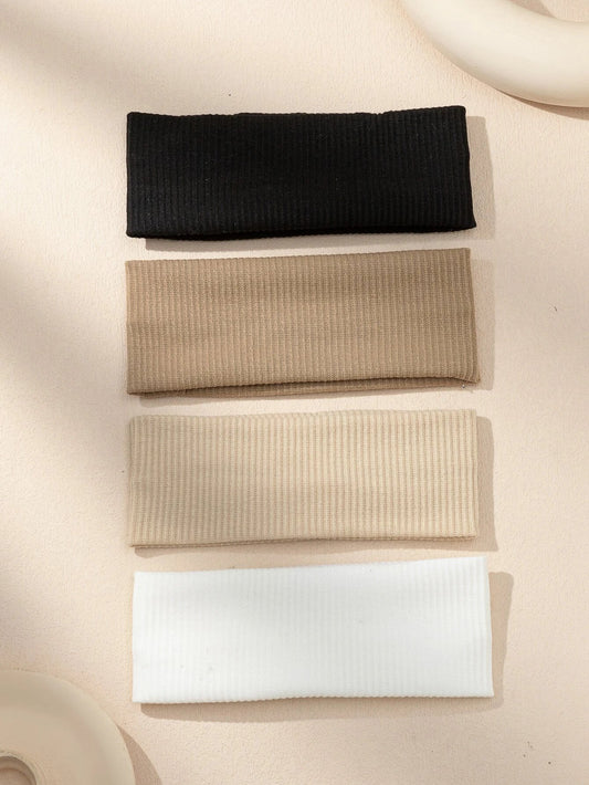 4 Stk Brede Hårbånd i - Ribstrik i Neutrale Farver