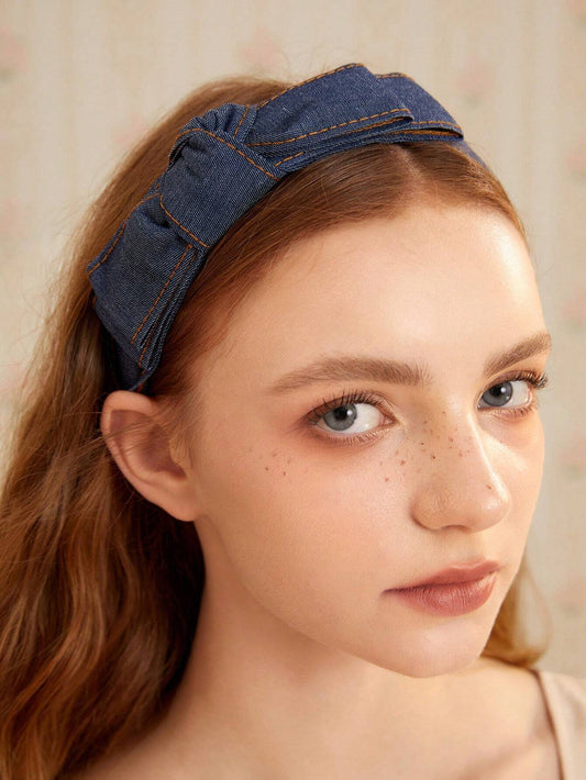 UdsolgtHårbøjle i Denim Blå med Sløjfe