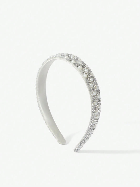 Hårbøjle med Glansfulde Perler - i Hvid & Sølv
