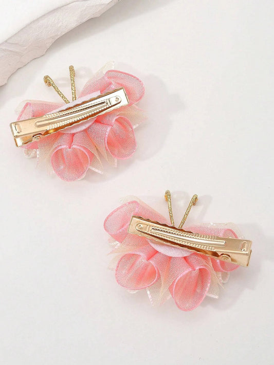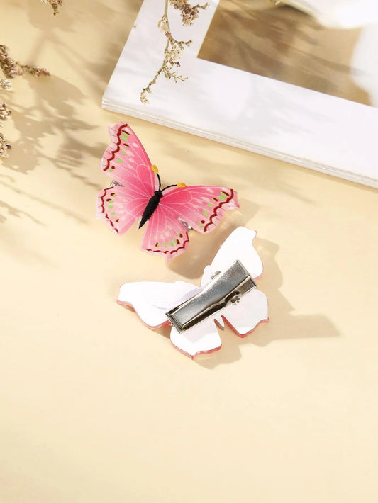 Sæt med 5 Lyserøde Sommerfugle Hårklemmer