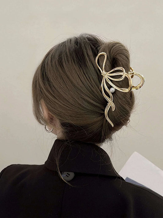Gylden Metal-Hårklemme med Sløjfe-Design & Perle